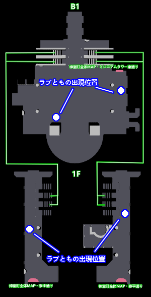 ラブともの位置は、データをロードするたびに変化するので、出会いたいラブとものエリアまで行き、そこで「セーブ→ロード」を繰り返せば、出会える確率がかなり高くなる