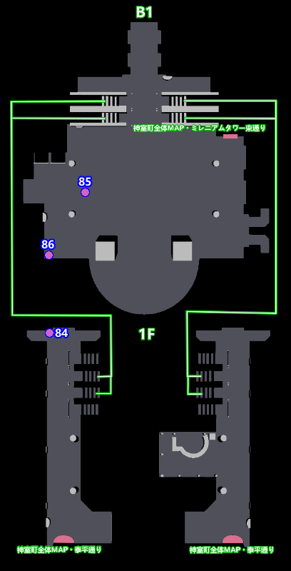 ※84~86の位置にあるラブボックスは、ミレニアムタワーの中にある
